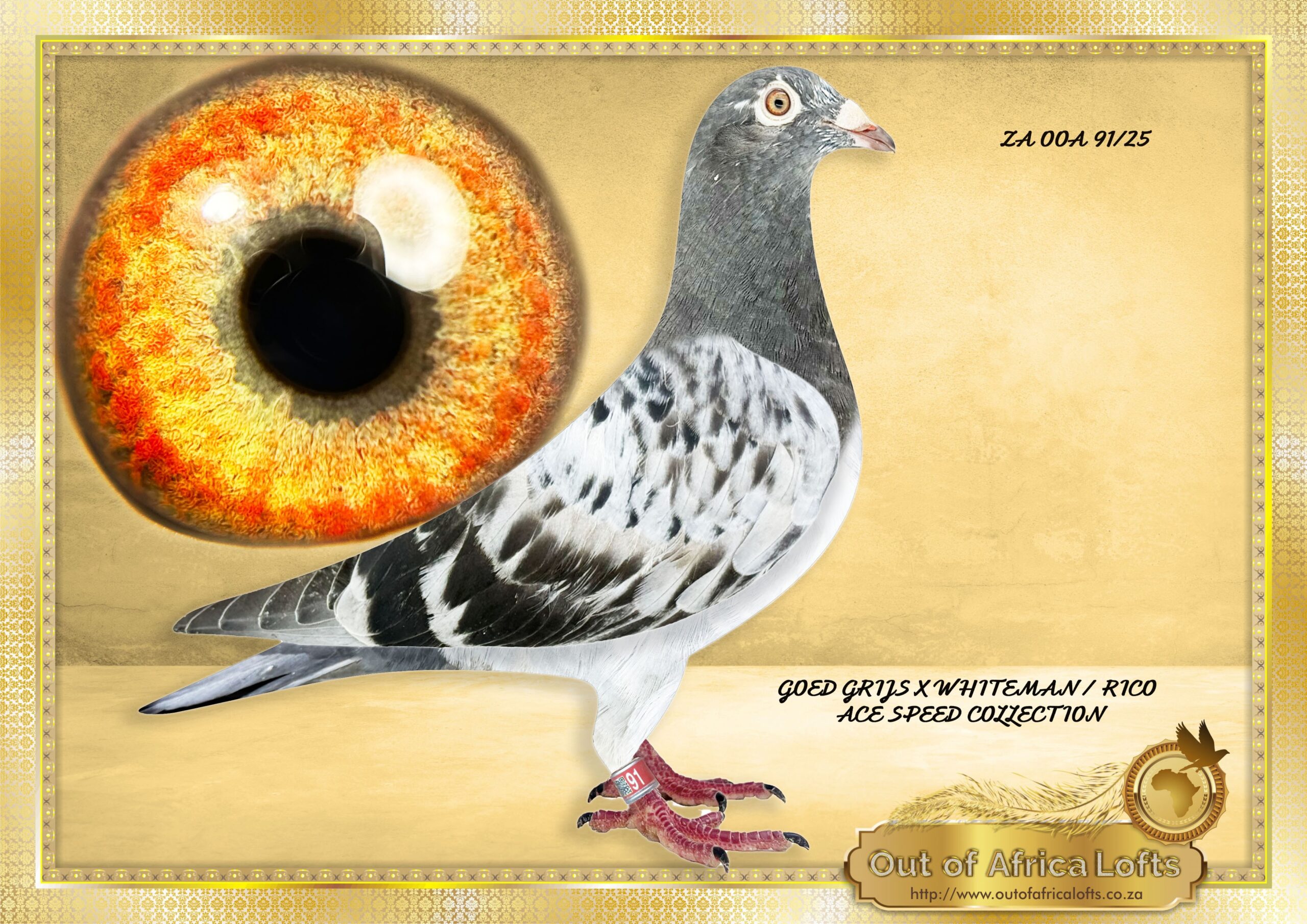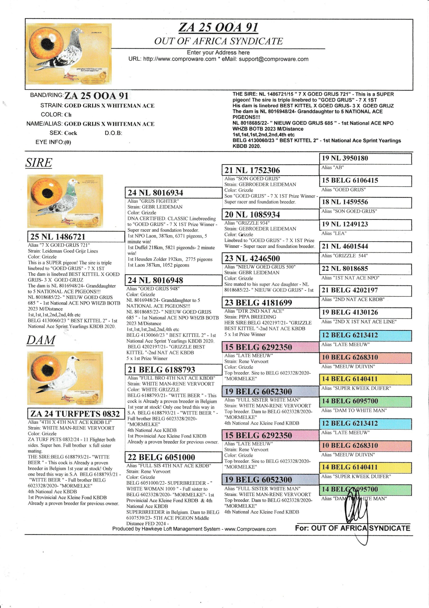 – This is a SUPER pigeon! The sire is triple linebred to “GOED GRIJS” – 7 X 1ST