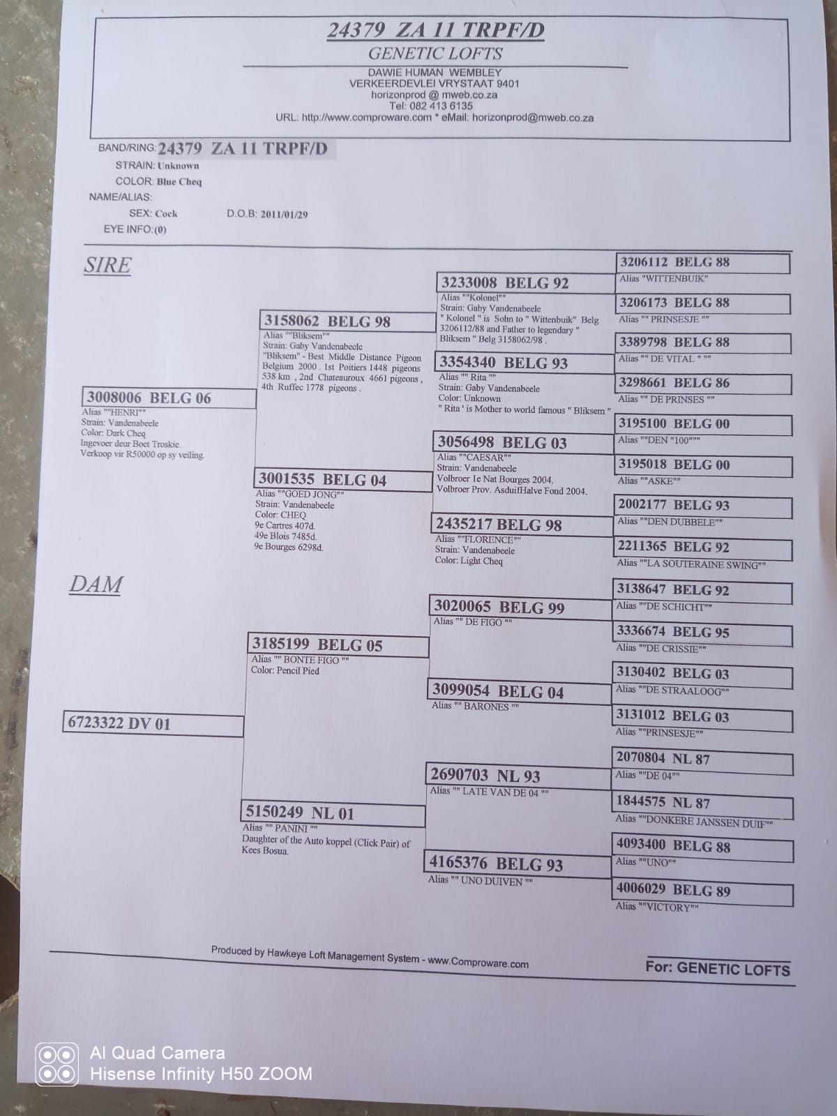 !!!! STUDY THE PEDIGREE !!! – THE SIRE – DIRECT CHILD OF THE LEGENDARY “BLIBKSEM” MATED TO THE GOED JONG – THIS IS SUPER GABY VAN DENABEELE GENETICS – DON’T MISS THIS ONE !!!