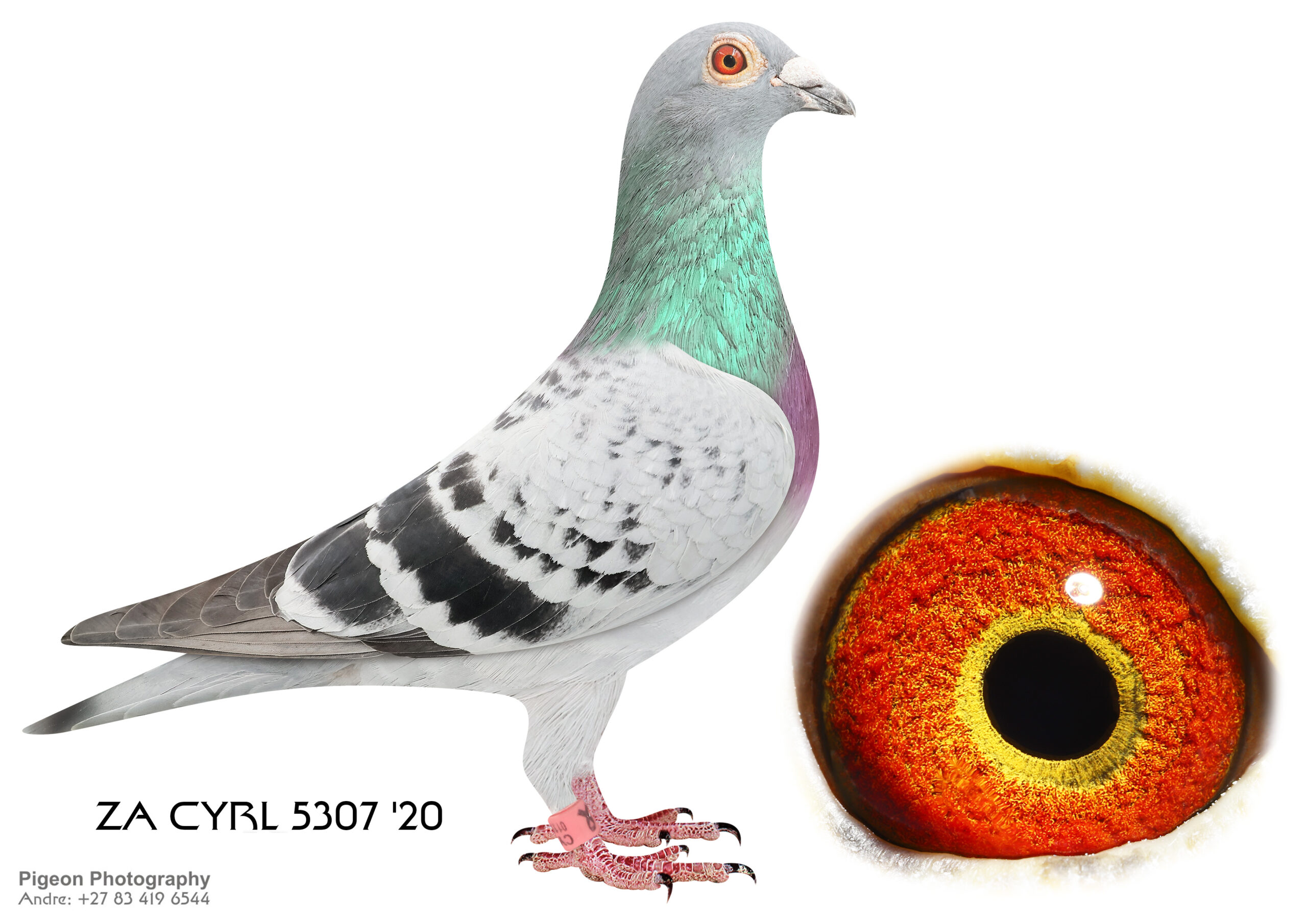 LOT 3: ZA 20 CYRL 5307 – P. Veenstra – THE SIRE: Bred from the best SAMDPR pigeons. The grandfather of this cock flew a 7th position at the SAMDPR against 2627 pigeons. He was the 6th best pigeon in the Average at SAMDPR. – THE DAM: Bred from the best SAMDPR pigeons. The grandfather of this hen flew a 7th position at the SAMDPR against 2627 pigeons. He was the 6th best pigeon in the Average at SAMDPR. – SEE PEDIGREE !!!
