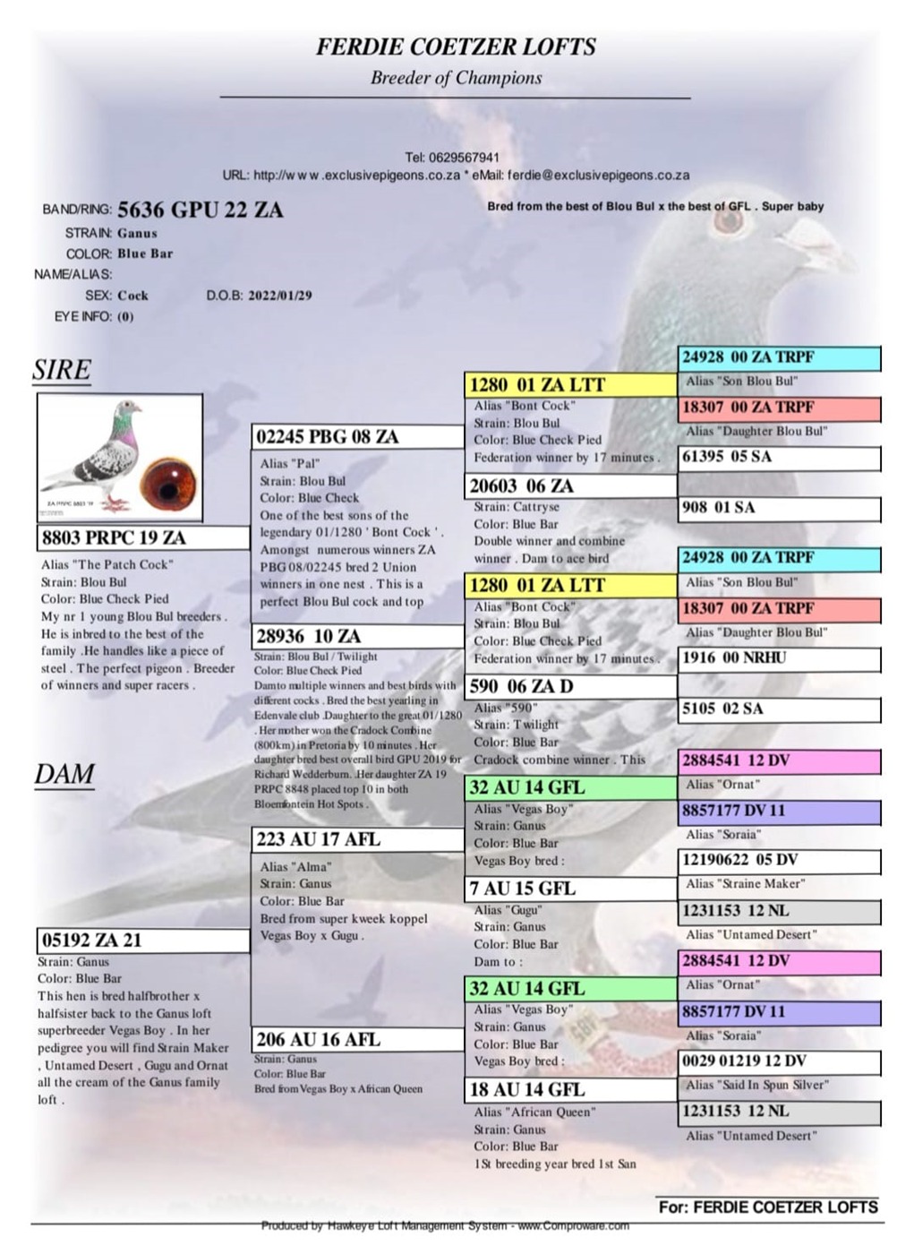 BRED FROM THE VERY BEST “BLOU BUL” “GANUS FAMILY LOFT” GENETICS